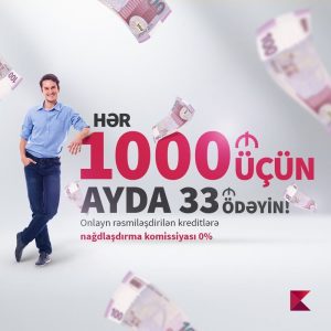 Kapital Bank əhalinin nağd pula olan tələbatını qarşılamaq məqsədilə yeni güzəştli şərtlərlə kredit kampaniyası təqdim edir. Rəsmi gəliri olan hər kəs, kampaniya çərçivəsində Kapital Bank-dan hər 1000 manat kredit üçün, ayda cəmi 33 manat ödəniş edəcək. Üstəlik, onlayn kredit sifarişlərində nağdlaşdırma komissiyası 0% təşkil edir.