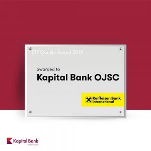 Kapital Bank dünyanın nüfuzlu maliyyə qurumlarından olan Raiffeisen Bank International AG tərəfindən “STP Quality Award 2019” mükafatı ilə təltif edilib. Bu mükafat beynəlxalq ödənişləri yüksək keyifyyətlə icra edən banklara təqdim olunur.