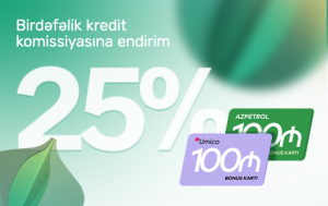 Belə ki, müştərilər “PAŞA Bank”ın onlayn biznes krediti sifarişi zamanı birdəfəlik komissiyaya 25% endirim əldə edəcəklər. Bu kreditdən yararlanan sahibkarlar endirimli faiz dərəcəsindən əlavə “Umico” və ya “Azpetrol” balansına 100 AZN bonus qazanacaqlar.