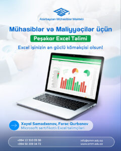Əgər siz hələ də Excel proqramı ilə istədiklərinizi edə bilmirsinizsə, o zaman istəklərinizi bizimlə reallaşdıra bilərsiniz. “Azərbaycan Mühasiblər Məktəbi”nin “Mühasib və maliyyəçilər üçün Excel” kursunu bitirməklə Excel proqramının mühasibat, maliyyə və HR ilə əlaqədar sirlərini öyrənmək şansı əldə edəcəksiniz.