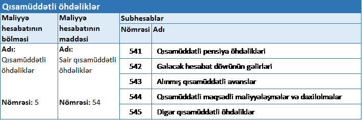 | 4 | ƏDV hesablandıqda | 217 – Digər qısamüddətli debitor borcları | 545 – Digər qısamüddətli öhdəliklər | 675,00 |