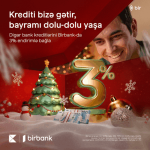 Sərfəli kredit axtarışında olanlar, bu xəbər sizin üçündür. Birbank digər banklarda kredit öhdəliyi olan müştərilər üçün əsl bayram hədiyyəsi edir. Belə ki, indi digər banklardakı kreditlərini Birbank-a gətirən hər kəs təyin olunan kredit faizinə 3% endirim qazanır. Yeni ili çətin maliyyə hesabatları aparmadan, büdcə sıxıntısı çəkmədən dolu-dolu yaşayın deyə bu şansı qaçırmayın.